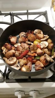 Add the chicken and vegetables to the pan. Sauté for 10 to 13 minutes or until the meat is no longer pink.