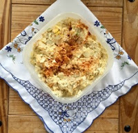 SCRAPE the skins off the potatoes. Slice in half widthwise then lengthwise. Slice into the bite size pieces. Add two at a time to the mayo blend and mix well. Continue until all the potatoes are added. Check the salad for dryness. It should be moist but not swimming in mayo. Add mayo as needed. Taste for seasoning. You may need more celery and onion.