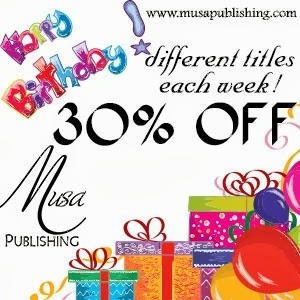 To celebrate this milestone, Musa Publishing has an offer readers simply can’t refuse. For the entire month of October, each week different imprints will be on sale for 30% off! Here’s a list of their imprints, so you can check out the books you’d like to download during the weeks of the sale: