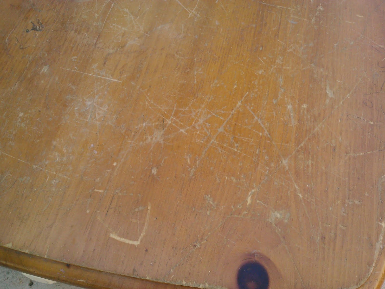 I mean look at this table top! This isn't even the worst of it! I actually didn't get a picture of the other top which was way worse. Honestly it looks like something my kids would do to the furniture in their rooms...scratch their names into the paint and then act like someone else did it. Really? Who else is going to carve YOUR name on YOUR nightstand? (can you tell I've had this conversation before? *sigh*)