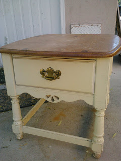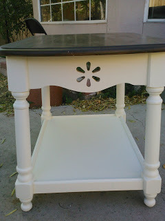 One of my scores this summer was this lovely side table. Actually I got two of them. They aren't identical but coordinate which is more of my style anyway. I really liked the lines but it was dirty and SCRATCHED!!