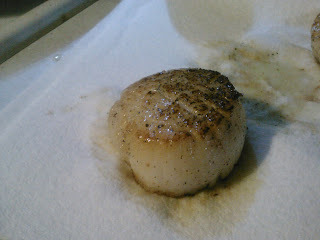 We've been huge fans of any show Chef Gordon Ramsey does for quite a while now, so I've watched my fair share of scallops being cooked (and undercooked, and overcooked). Anyway....here is my first attempt at cooking a jumbo scallop: