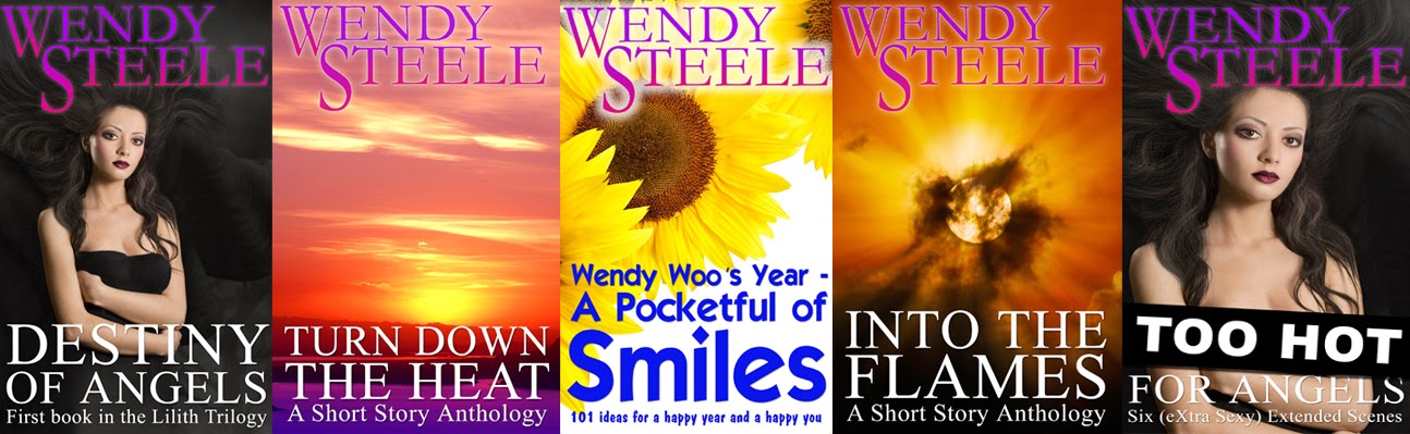 Website: www.wendysteele.com Twitter: https://twitter.com/WendyWooauthor Facebook: https://www.facebook.com/destinyofangelsnovel https://www.facebook.com/WendyWooBooks https://www.facebook.com/TheStandingStone Amazon author: http://www.amazon.com/Wendy-Steele/e/B007VZ1P06/ref=ntt_dp_epwbk_0 http://www.amazon.co.uk/Wendy-Steele/e/B007VZ1P06/ref=sr_tc_2_0?qid=1365459567&sr=1-2-ent LinkedIn:https://www.linkedin.com/profile/view?id=216391838&trk=nav_responsive_tab_profileGoodreads author: http://www.goodreads.com/author/show/6548666.Wendy_Steele