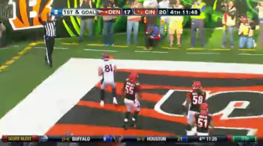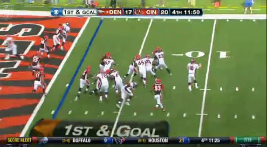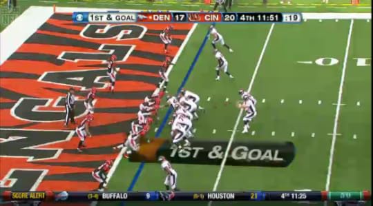 - Poor blocking on the Holliday TD. 4 Bengals have an opportunity to make the tackle before the 20 and several more after. However, all take terrible angles and clearly weren’t expecting Holliday’s unique burst and long speed. I blame this on Cincy’s ST coach. It was Trindon’s first KR as a Bronco, but he has tape from Houston and they should’ve prepared for the possibility of him returning kicks along with preparing for Bolden.