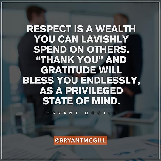 "Respect is a wealth you can lavishly spend on others. "Thank you" and gratitude will bless you endlessly, as a privileged state of mind." — Bryant McGill