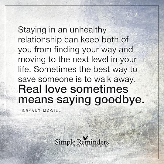 "Staying in an unhealthy relationship can keep both of you from finding your way and moving to the next level in your life. Sometimes the best way to save someone is to walk away. Real love sometimes means saying goodbye."