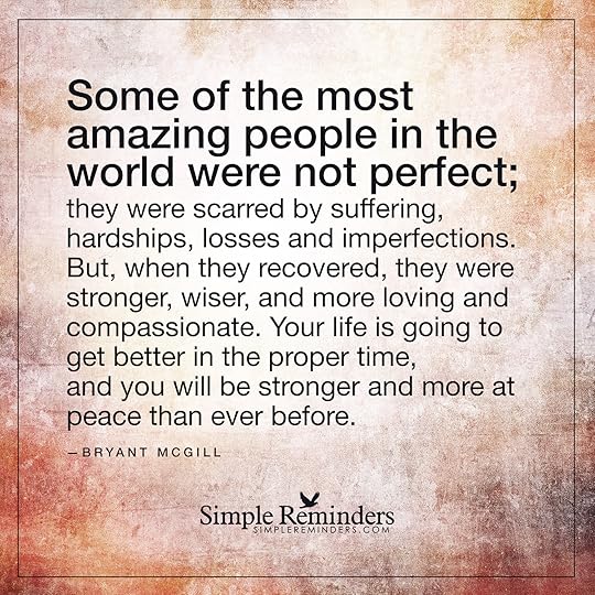 "Some of the most amazing people in the world were not perfect; they were scarred by suffering, hardships, losses and imperfections. But, when they recovered, they were stronger, wiser, and more loving and compassionate. Your life is going to get better in the proper time, and you will be stronger and more at peace than ever before."