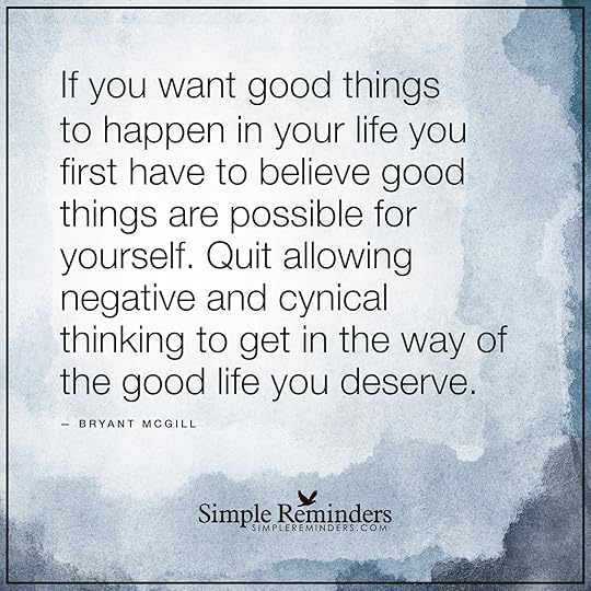 "If you want good things to happen in your life you first have to believe good things are possible for yourself. Quit allowing negative and cynical thinking to get in the way of the good life you deserve."