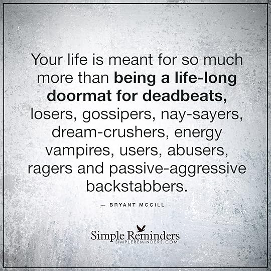 "Your life is meant for so much more than being a life-long doormat for deadbeats, losers, gossipers, nay-sayers, dream-crushers, energy vampires, users, abusers, ragers and passive-aggressive backstabbers."