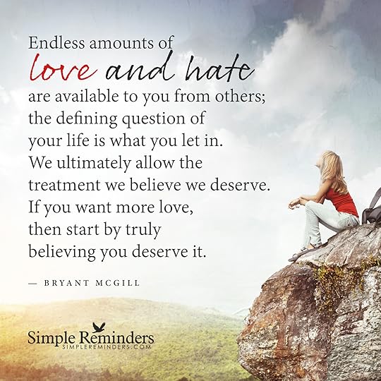 "Endless amounts of love and hate are available to you from others; the defining question of your life is what you let in. We ultimately allow the treatment we believe we deserve. If you want more love, then start by truly believing you deserve it."