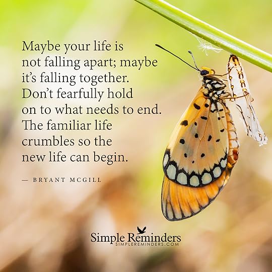 "Maybe your life is not falling apart; maybe it's falling together. Don't fearfully hold on to what needs to end. The familiar life crumbles so the new life can begin."