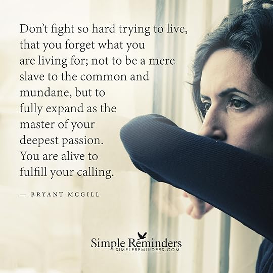 "Don't fight so hard trying to live, that you forget what you are living for; not to be a mere slave to the common and mundane, but to fully expand as an uncommon master of your deepest passion. You are alive to fulfill your calling."