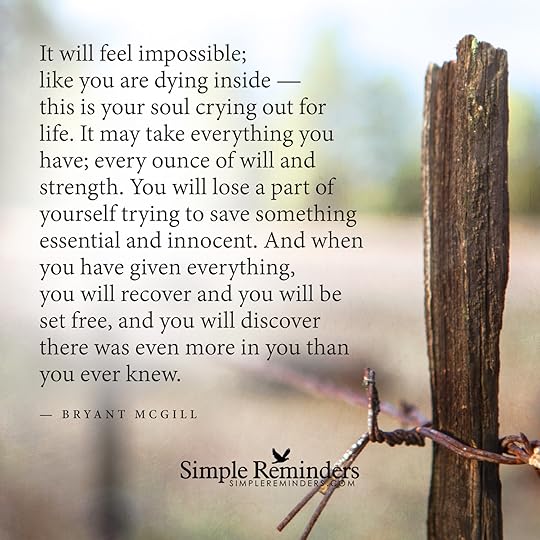 "It will feel impossible; like you are dying inside — this is your soul crying out for life. It may take everything you have; every ounce of will and strength. You will lose a part of yourself trying to save something essential and innocent. And when you have given everything, you will recover and you will be set free, and you will discover there was even more in you than you ever knew."