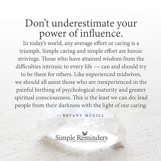 "In today's world, any average effort or caring is a triumph. Don't underestimate your power of influence. Simple caring and simple effort are heroic strivings. Those who have attained wisdom from the difficulties intrinsic to every life — can and should try to be there for others. Like experienced midwives, we should all assist those who are inexperienced in the painful birthing of psychological maturity and greater spiritual consciousness. This is the least we can do; lead people from their...