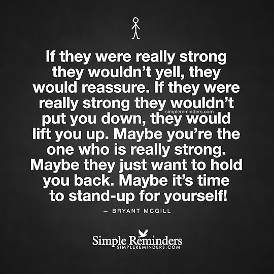"If they were really strong they wouldn't yell, they would reassure. If they were really strong they wouldn't put you down, they would lift you up. Maybe you're the one who is really strong. Maybe they just want to hold you back. Maybe it's time to stand-up for yourself!"