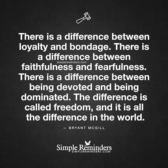 "There is a difference between loyalty and bondage. There is a difference between faithfulness and fearfulness. There is a difference between being devoted and being dominated. The difference is called freedom, and it is all the difference in the world. This is your life and you get to choose what is acceptable in your relationships with absolute authority. Don't give your authority to someone who will abuses your trust. If you have mistakenly entrusted your authority to an abuser; revoke and...