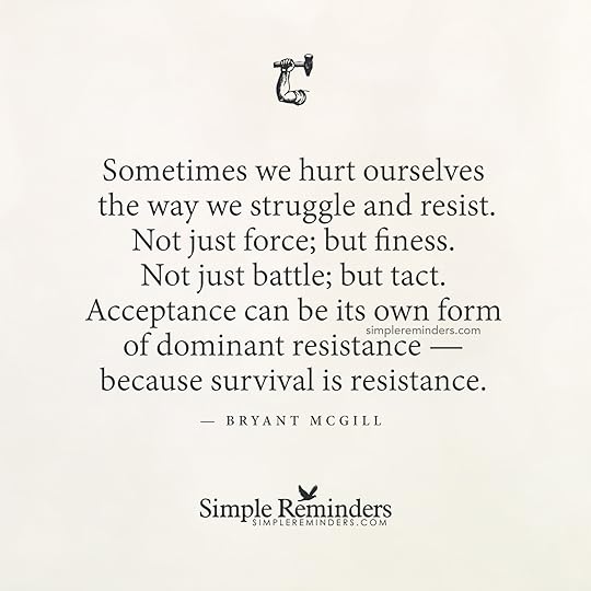 "Sometimes we hurt ourselves the way we struggle and resist. Not just force; but finess. Not just battle; but tact. Acceptance can be its own form of dominant resistance — because survival is resistance."