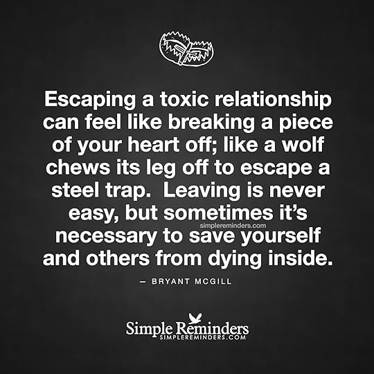 "Escaping a toxic relationship can feel like breaking a piece of your heart off; like a wolf chews its leg off to escape a steel trap. Leaving is never easy, but sometimes it's necessary to save yourself and others from dying inside."
