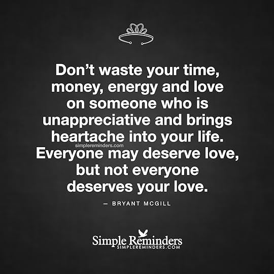 "Don't waste your time, money, energy and love on someone who is unappreciative and brings heartache into your life. Everyone may deserve love, but not everyone deserves your love."