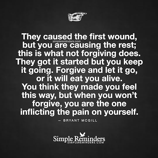 "They caused the first wound, but you are causing the rest; this is what not forgiving does. They got it started but you keep it going. Forgive and let it go, or it will eat you alive. You think they made you feel this way, but when you won't forgive, you are the one inflicting the pain on yourself."