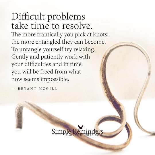 "Difficult problems take time to resolve. The more frantically you pick at knots, the more entangled they can become. To untangle yourself try relaxing. Gently and patiently work with your difficulties and in time you will be freed from what now seems impossible."