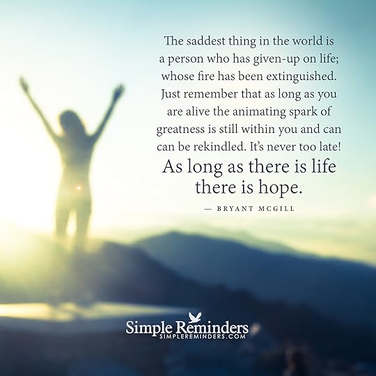 "The saddest thing in the world is a person who has given-up on life; whose fire has been extinguished. Just remember that as long as you are alive the animating spark of greatness is still within you and can can be rekindled. It's never too late! As long as there is life there is hope."