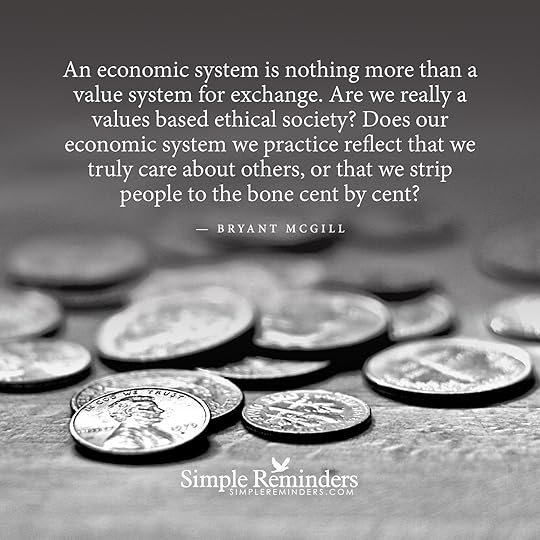 "An economic system is nothing more than a value system for exchange. Are we really a values based ethical society? Does our economic system we practice reflect that we truly care about others, or that we strip people to the bone cent by cent?"