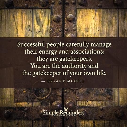 "Successful people carefully manage their energy and associations; they are gatekeepers. You are the authority and the gatekeeper of your own life."