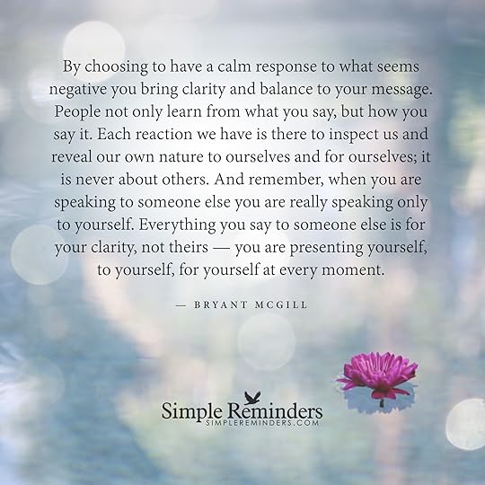 "By choosing to have a calm response to what seems negative you bring clarity and balance to your message. People not only learn from what you say, but how you say it. Each reaction we have is there to inspect us and reveal our own nature to ourselves and for ourselves; it is never about others. And remember, when you are speaking to someone else you are really speaking only to yourself. Everything you say to someone else is for your clarity, not theirs you are presenting yourself, to yoursel...
