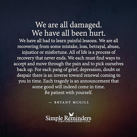"We are all damaged. We have all been hurt. We have all had to learn painful lessons. We are all recovering from some mistake, loss, betrayal, abuse, injustice or misfortune. All of life is a process of recovery that never ends. We each must find ways to accept and move through the pain and to pick ourselves back up. For each pang of grief, depression, doubt or despair there is an inverse toward renewal coming to you in time. Each tragedy is an announcement that some good will indeed come in...