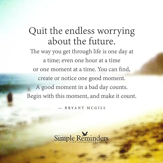 "Quit the endless worrying about the future. The way you get through life is one day at a time; even one hour at a time or one moment at a time. You can find, create or notice one good moment. A good moment in a bad day counts. Begin with this moment, and make it count."