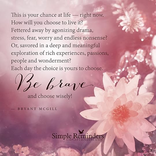 "This is your chance at life — right now. How will you choose to live it? Fettered away by agonizing drama, stress, fear, worry and endless nonsense? Or, savored in a deep and meaningful exploration of rich experiences, passions, people and wonderment? Each day the choice is yours to choose. Be brave and choose wisely!"