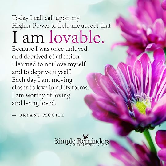 "Today I call call upon my Higher Power to help me accept that I am lovable. Because I was once unloved and deprived of affection I learned to not love myself and to deprive myself. Each day I am moving closer to love in all its forms. I am worthy of loving and being loved."