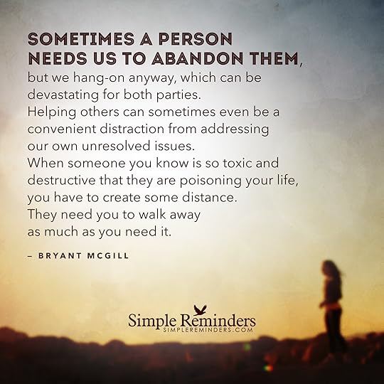 "Sometimes a person needs us to abandon them, but we hang-on anyway, which can be devastating for both parties. Helping others can sometimes even be a convenient distraction from addressing our own unresolved issues. When someone you know is so toxic and destructive that they are poisoning your life, you have to create some distance. They need you to walk away as much as you need it."