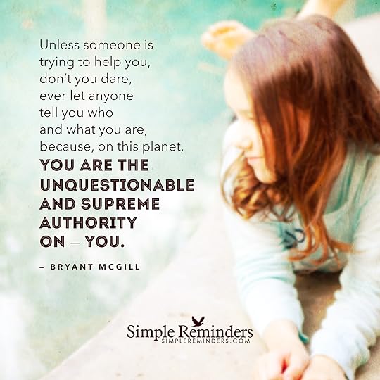 "Unless someone is trying to help you, don't you dare, ever let anyone tell you who and what you are, because, on this planet, you are the unquestionable and supreme authority on ��" you."