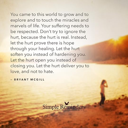 "You came to this world to grow and to explore and to touch the miracles and marvels of life. Your suffering needs to be respected. Don't try to ignore the hurt, because the hurt is real. Instead, let the hurt prove there is hope through your healing. Let the hurt soften you instead of hardening you. Let the hurt open you instead of closing you. Let the hurt deliver you to love, and not to hate."