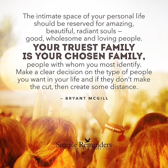 "The intimate space of your personal life should be reserved for amazing, beautiful, radiant souls — good, wholesome and loving people. Your truest family is your chosen family, people with whom you most identify. Make a clear decision on the type of people you want in your life and if they don't make the cut, then create some distance."