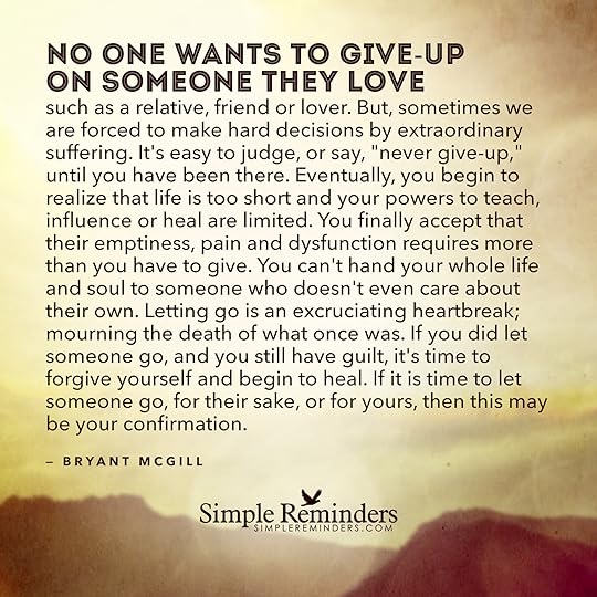 "No one wants to give-up on someone they love, such as a relative, friend or lover. But, sometimes we are forced to make hard decisions by extraordinary suffering. It's easy to judge, or say, "never give-up," until you have been there. Eventually, you begin to realize that life is too short and your powers to teach, influence or heal are limited. You finally accept that their emptiness, pain and dysfunction requires more than you have to give. You can't hand your whole life and soul to someon...