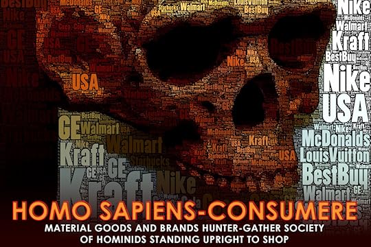 By bombarding each person with hundreds-of-thousands of commercial messages per year, the technocratic, consumer research scientists have created a new fork in the road of human evolution. Through generations of cradle-to-grave consumer conditioning, and lifelong intra-cerebral media-drips, the emergence of a new proto-human has arrived, the Homo sapiens-consumere. This is a highly specialized species of docile, obedient consumers. They are a material goods and brands, hunter-gather society...