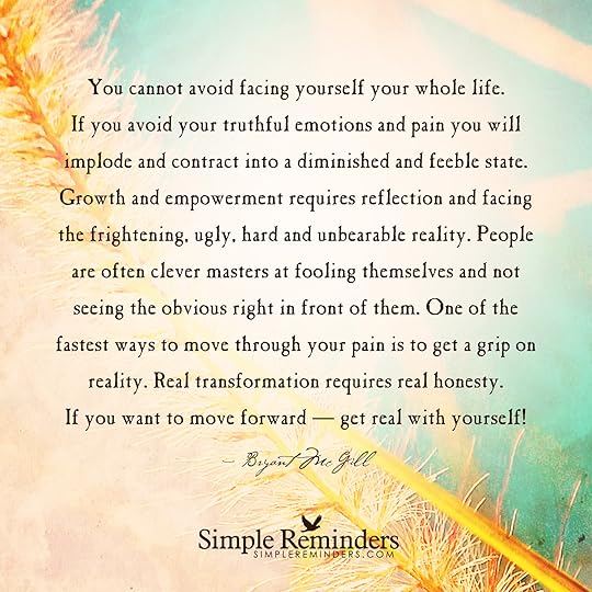 "You cannot avoid facing yourself your whole life. If you avoid your truthful emotions and pain you will implode and contract into a diminished and feeble state. Growth and empowerment requires reflection and facing the frightening, ugly, hard and unbearable reality. People are often clever masters at fooling themselves and not seeing the obvious right in front of them. One of the fastest ways to move through your pain is to get a grip on reality. Real transformation requires real honesty. I...