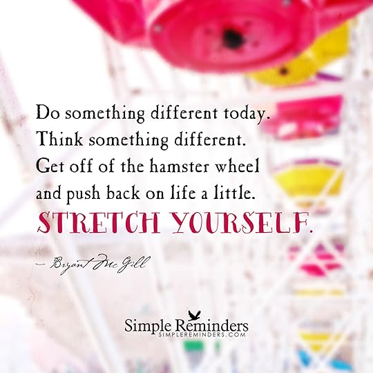 "Do something different today. Think something different. Get off of the hamster wheel and push back on life a little. Stretch yourself." — Bryant McGill