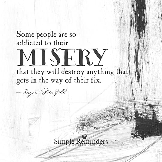 "Some people are so addicted to their misery that they will destroy anything that gets in the way of their fix." — Bryant McGill