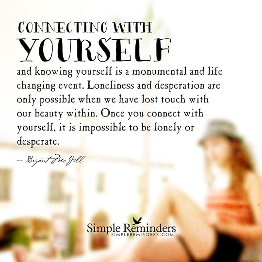"Connecting with yourself and knowing yourself is a monumental and life changing event. Loneliness and desperation are only possible when we have lost touch with our beauty within. Once you connect with yourself, it is impossible to be lonely or desperate."