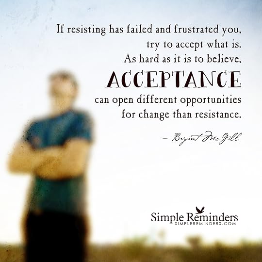 "If resisting has failed and frustrated you, try to accept what is. As hard as it is to believe, acceptance can open different opportunities for change than resistance."