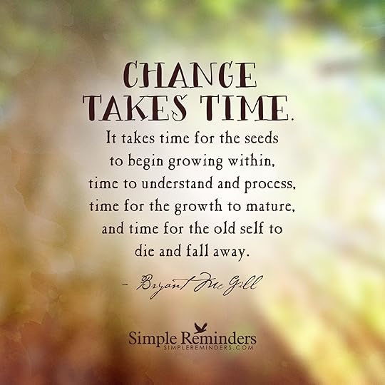 "Change takes time. It takes time for the seeds to begin growing within, time to understand and process, time for the growth to mature, and time for the old self to die and fall away."