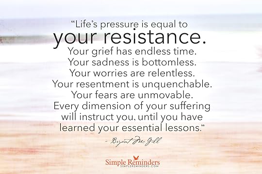 Life's pressure is equal to your resistance. Your grief has endless time. Your sadness is bottomless. Your worries are relentless. Your resentment is unquenchable. Your fears are unmovable. Every dimension of your suffering will instruct you, until you have learned their essential lessons.