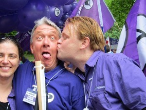 Det här är inte bara ett bra sätt att visa partiets färger (alla som går med i paraden med Piratpartiet får en lila t-shirt). Framför allt brukar det vara kul att gå genom stan och vinka till alla de hundratusentals åskådarna som kantar vägen.
