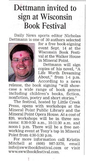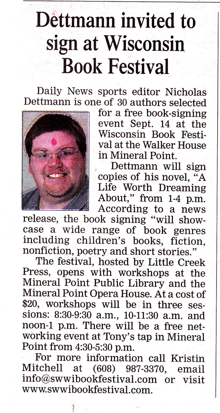 I will be at the 3rd annual Southwest Wisconsin Book Festival from 1-4 p.m. this Saturday (Sept. 14) doing a book signing as one of the featured authors.