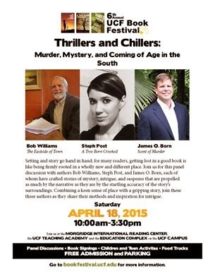 Many, many thanks to those of you who came out to the UCF Book Festival in Orlando yesterday, and also thanks to those who have supported me and helped spread the word about the event. This was my first time speaking on an author panel for A Tree Born Crooked and the experience was incredible. I met some fantastic authors and literary folks and, most importantly, readers. With a standing-room-only crowd, terrific fellow panelists Robert Williams and James O. Born and interesting, thoughtful questions it was an hour, and an event, to remember. Here's to many more in the future!