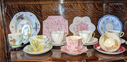 One day, I received a gift of four beautiful Shelley China cups and saucers. The Shelley Pottery Works, I soon learned, was one of Staffordshire’s premier china producers. These particular teacups came to me from the daughter of an elderly reader who had recently passed away; it was a thank you for the joy my Newport series had brought her mother in her final days. She had lived in Newport during the 40s and 50s, and the books brought her back to what had been some of her happiest years. Turns out, those cups had also been a gift to her—from my husband’s own great aunt, who had been her friend and landlady. Talk about a small world. Talk about karma. Talk about coming full circle.
